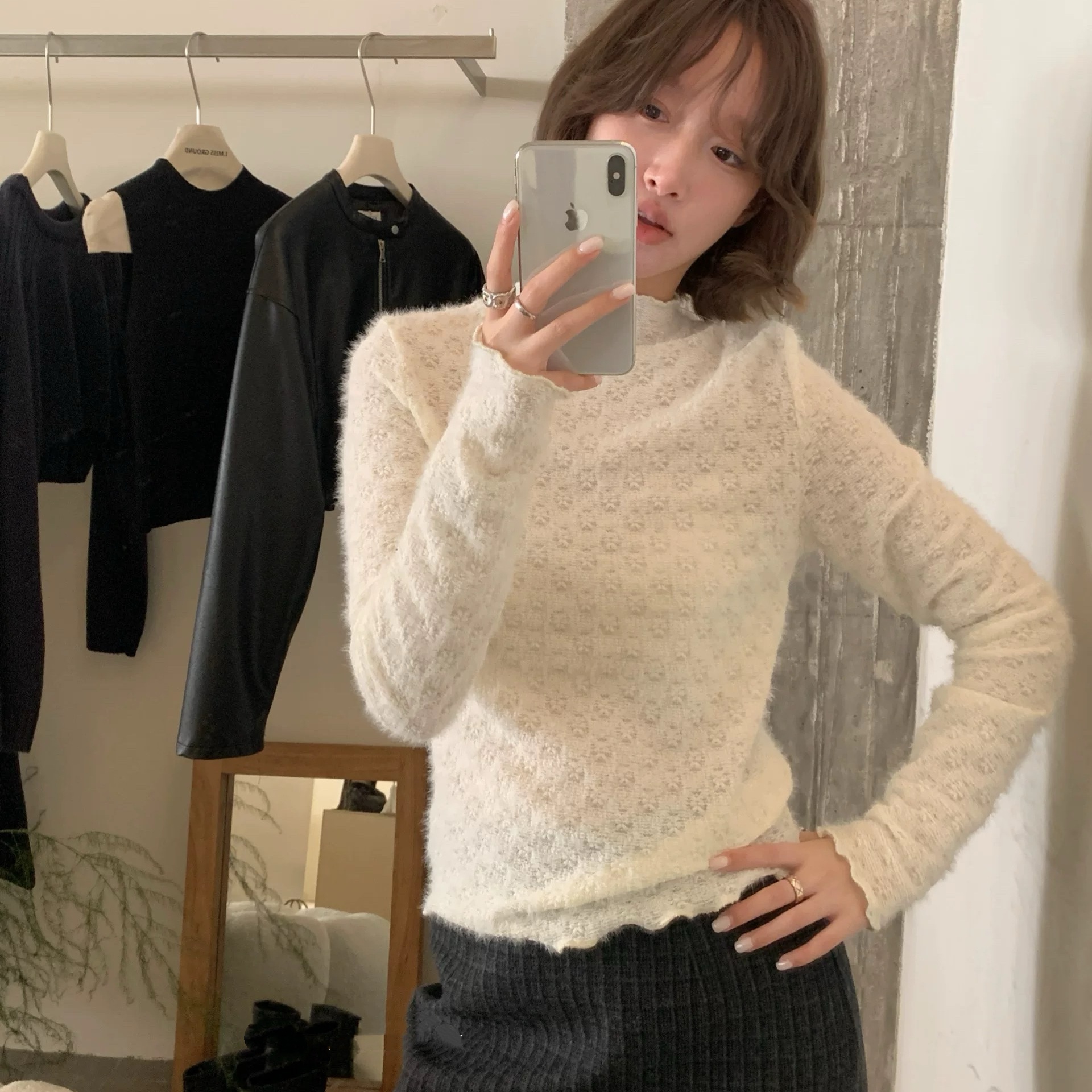 表面感のある花柄ジャカード風トップス。シアー感があることで、軽やかで上品な