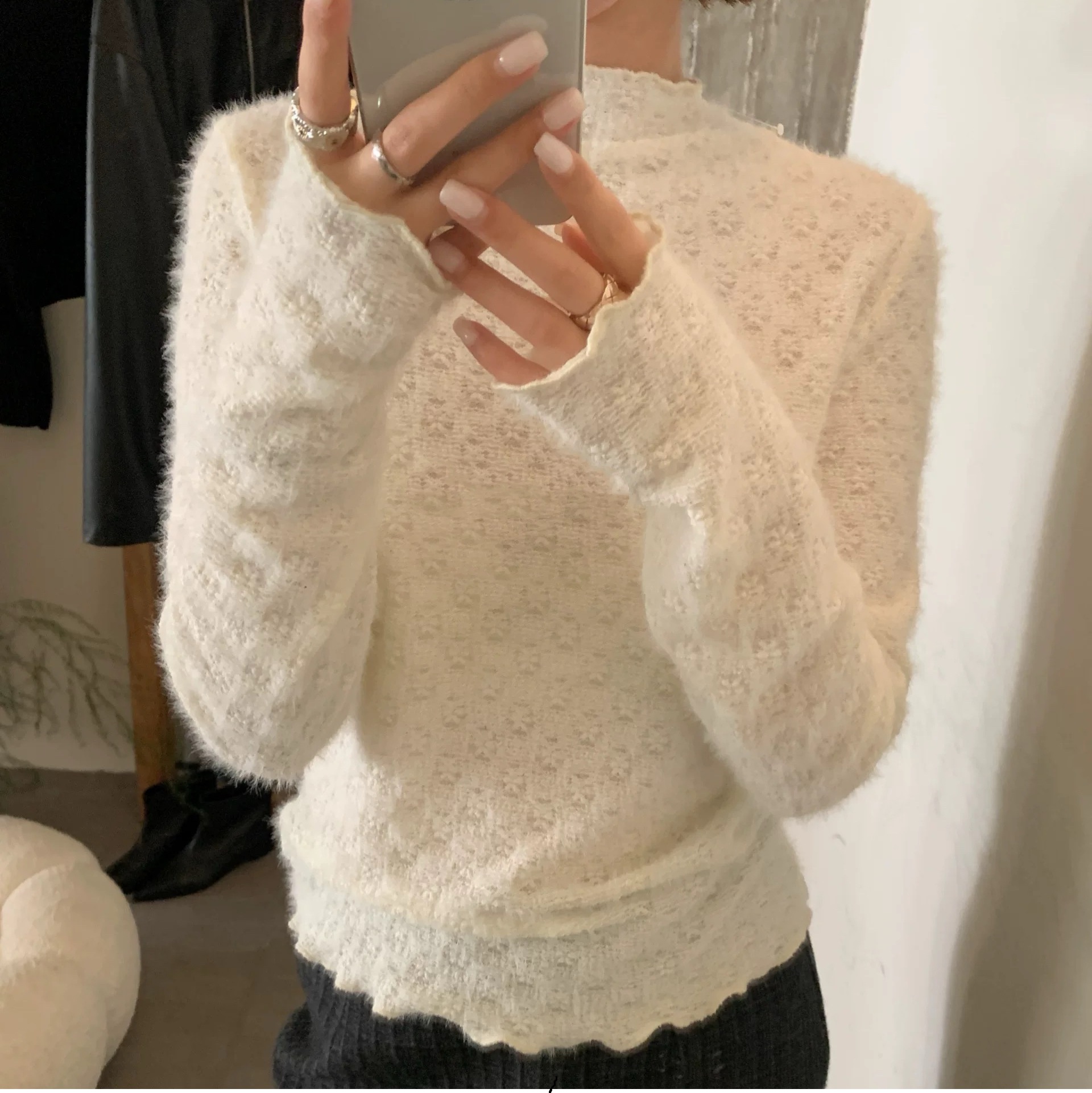 表面感のある花柄ジャカード風トップス。シアー感があることで、軽やかで上品な